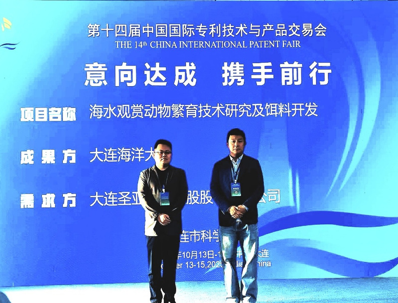 2025年10月13日,天空放晴。值此第十四届中国国际专利技术与产品交易会召开之际,由大连市科技局主办的项目达成仪式在大连国际会议中心顺利举行。大连海洋大学辽宁省北方鱼类应用生物学与增养殖重点实验室陈岩老师与大连圣亚旅游控股股份有限公司(以下简称圣亚)海洋生物研究所副所长罗珺博士出席该仪式。双方就进一步深入推进“海水观赏动物繁育技术研究及饵料开发项目”达成一致。